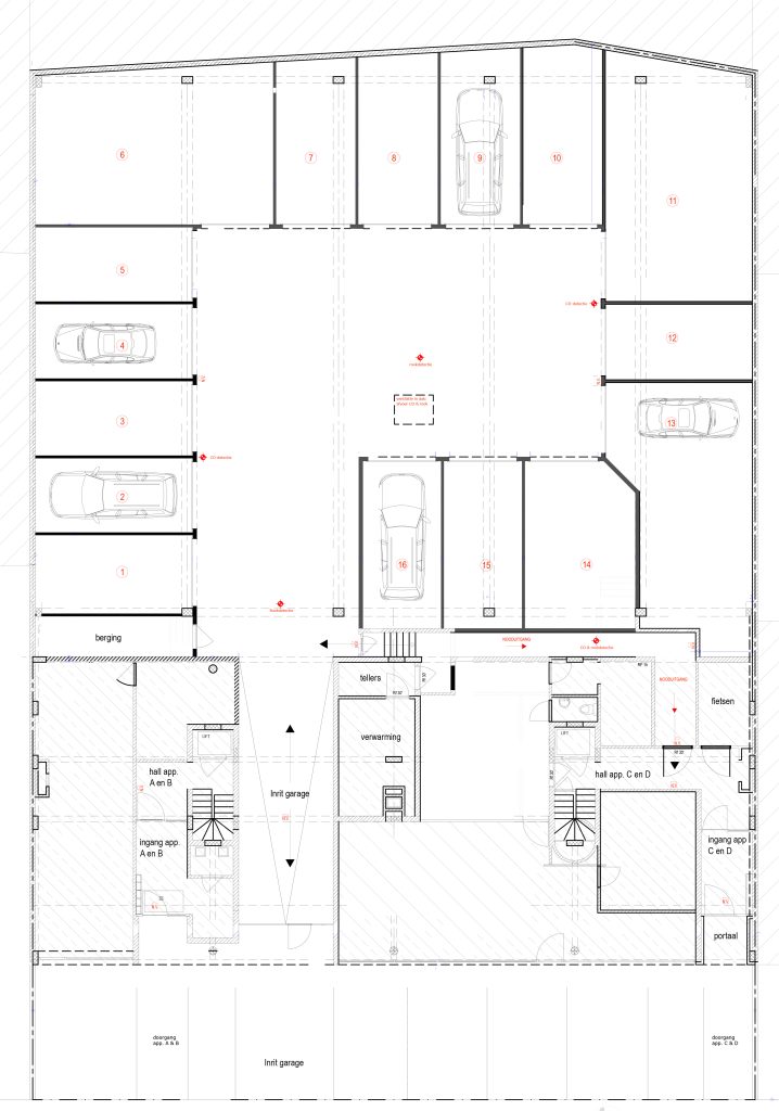 Dit garagecomplex wordt zonder syndicus beheerd en is onafhankelijk van het appartementsgebouw vooraan.